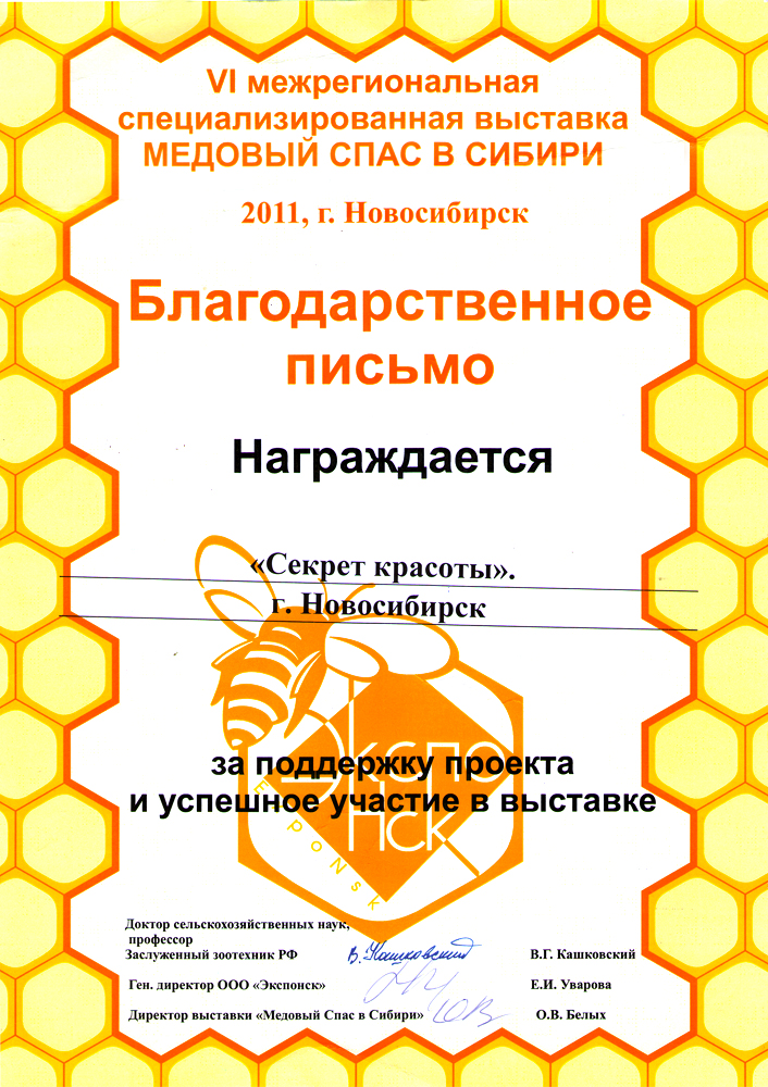 Компания ООО НПЛ «ЛН-Косметика» регулярно участвует во Всероссийских и Международных специализированных и межотраслевых выставках и конкурсах. Продукция Компании «Секрет красоты» отмечена медалями и дипломами. Многочисленные знаки признания подтверждают высокое качество и уникальность сухой косметики «Секрет красоты», а также эффективность работы Компании в продвижении продукции на рынок.